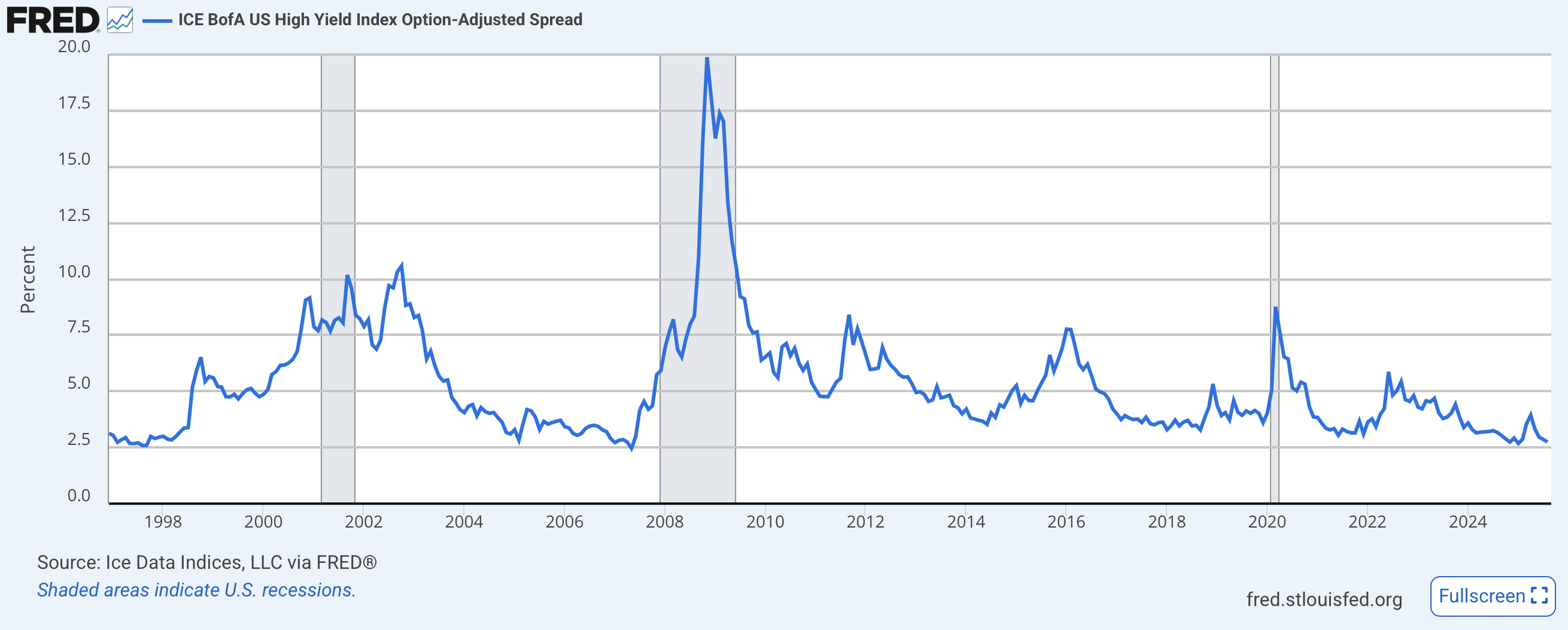 Historically, when spreads reached extremely tight levels, it often signaled vulnerability in the system. For example, in 2007 spreads were very low just before the global financial crisis unfolded. This tells us that when investors stop pricing in enough risk, fragilities tend to build up beneath the surface, leaving markets more exposed to shocks.